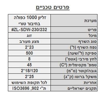 זליון 1000 כפולה בחיבור טורי+מד מוליכות להפקת מים נטולי מלחים באיכות גבוהה - DDW